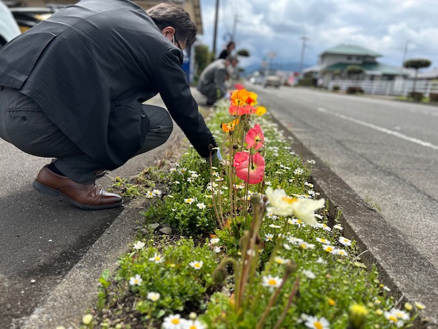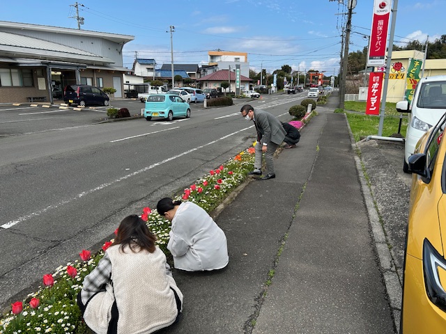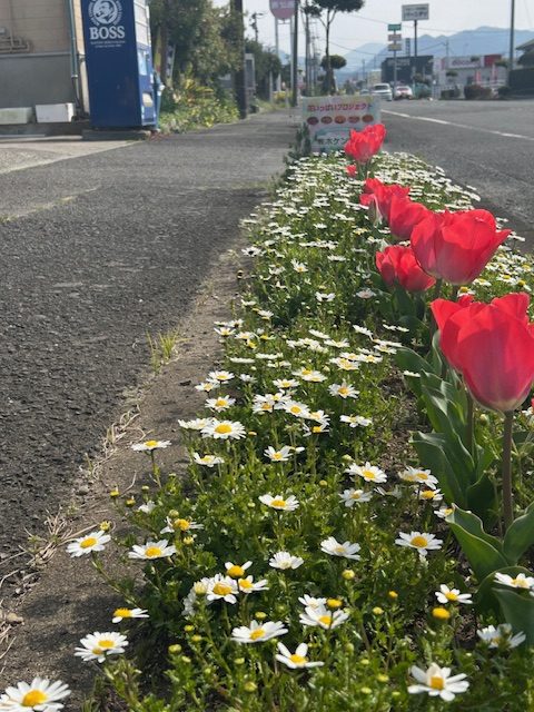 すっかり春らしい気候になり、事務所前の花壇では年末に植えたたくさんのお花が咲きました。この時期は、それぞれのおめでとうが重なる季節でもありますね!